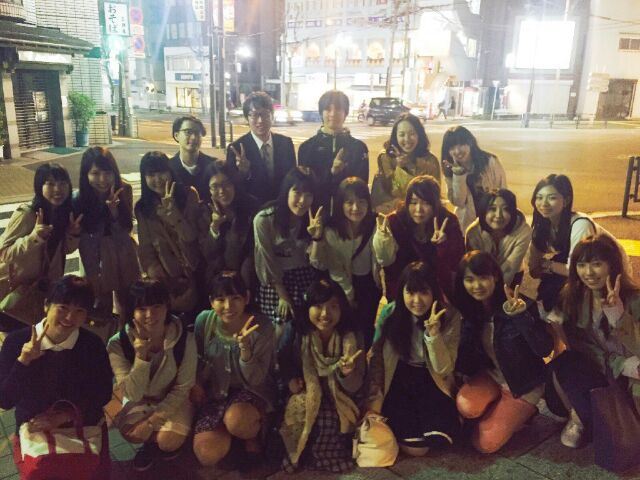 お店の中で集合写真をとるのをすっかり忘れてしまいましたが、店員さんのご厚意により、屋外で写真をとって頂きました。そのため、暗い…次回からは気を付けます笑